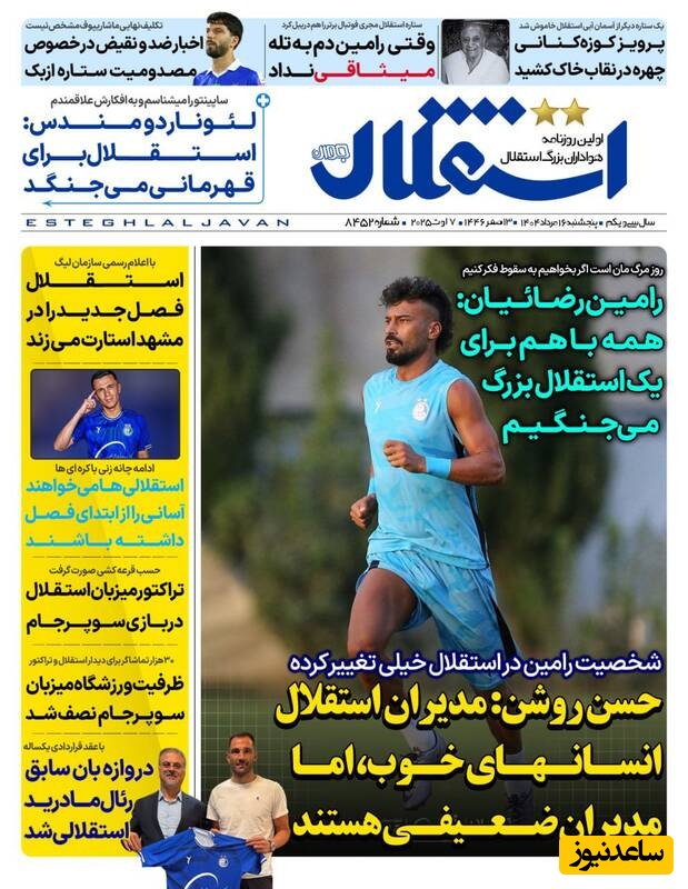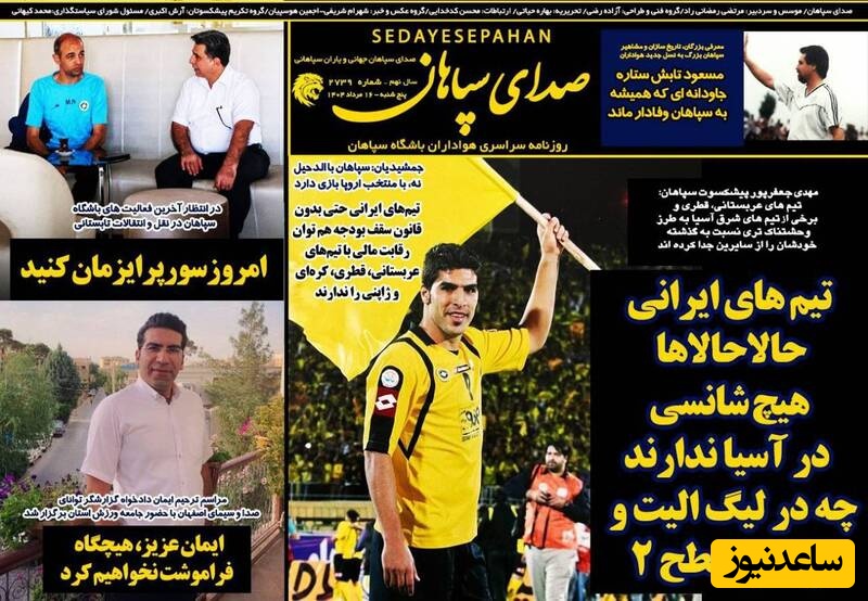 به گزارش سرویس ورزش ساعدنیوز، روزنامهها در شماره امروز خود به موضوعات مختلفی پرداختهاند؛ از گزارشهای داغ ورزشی و حواشی پیرامون تیمهای ملی گرفته تا تحلیلهای سیاسی و اقتصادی. در این میان، اخبار روز، تحلیلها و دیدگاههای تازهای به مخاطبان ارائه میدهند.