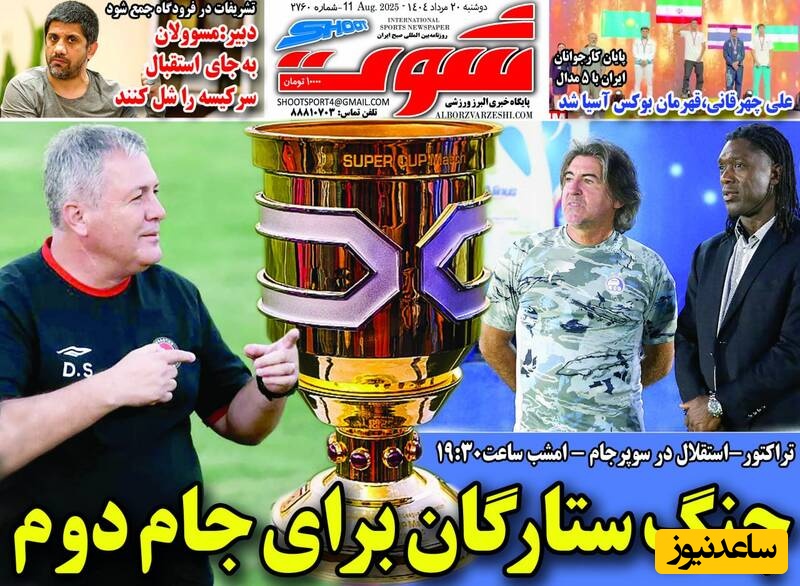 ساعدنیوز: در روز دوشنبه 20 مرداد 1404، روزنامه‌های کشور با عناوین مختلف به مهم‌ترین رویدادهای ورزشی، اجتماعی و سیاسی پرداخته‌اند. از تحولات جدید در عرصه‌های مختلف تا واکنش‌ها به اتفاقات روز، این عناوین نمایانگر دغدغه‌های جامعه در این روزها هستند.