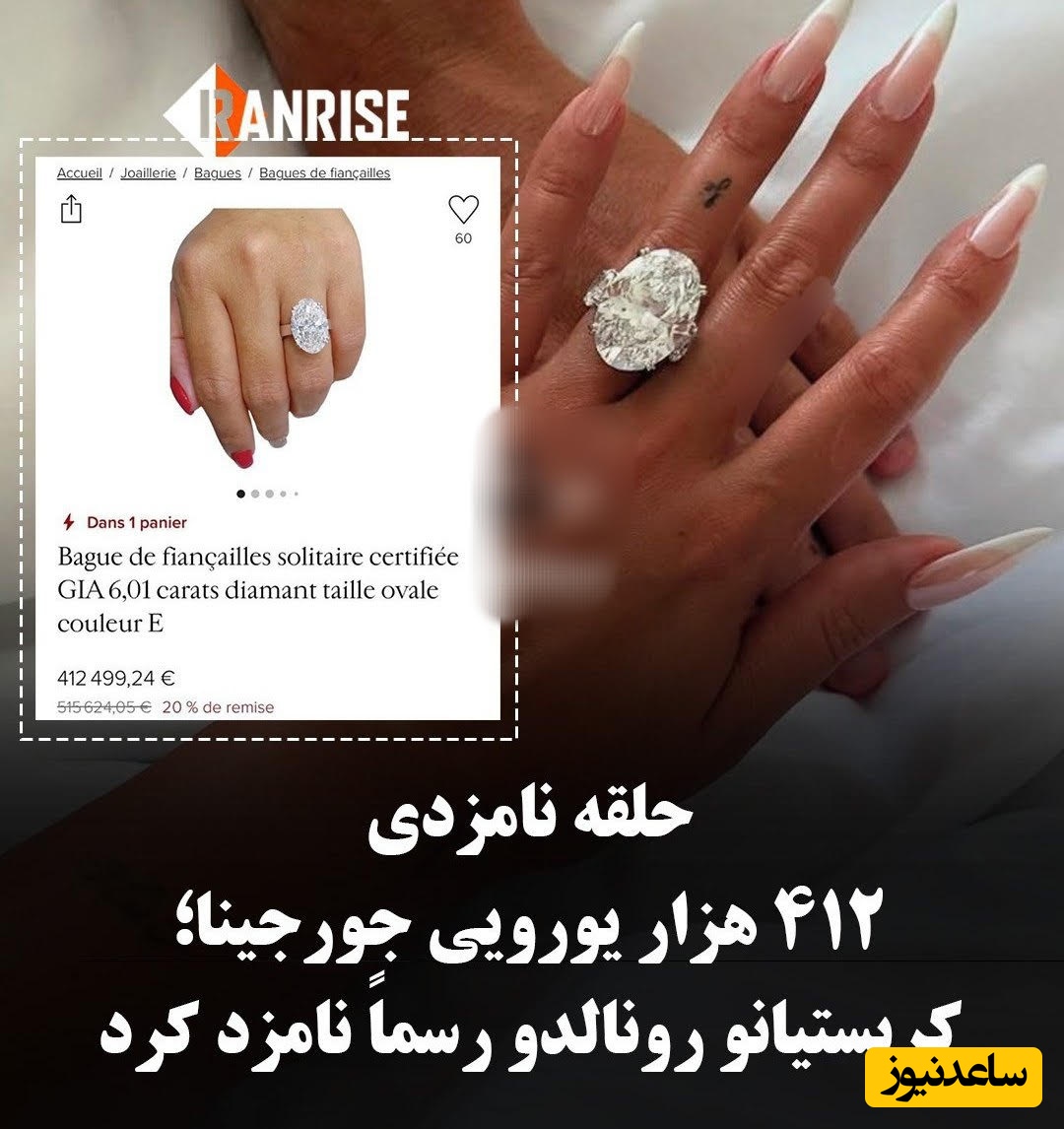 به گزارش سرویس ورزش ساعدنیوز، قیمت حلقهی نامزدی که رونالدو به جورجینا هدیه داده 412 هزار یورو یعنی 45 میلیارد تومان است.