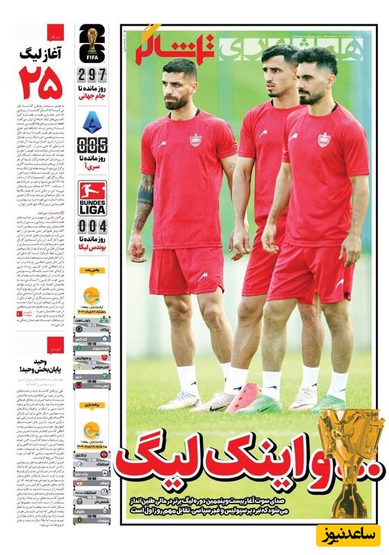 به گزارش سرویس ورزش ساعدنیوز، روزنامه‌ها در شماره امروز خود به موضوعات مختلفی پرداخته‌اند؛ از گزارش‌های داغ ورزشی و حواشی پیرامون تیم‌های ملی گرفته تا تحلیل‌های سیاسی و اقتصادی. در این میان، اخبار روز، تحلیل‌ها و دیدگاه‌های تازه‌ای به مخاطبان ارائه می‌دهند.