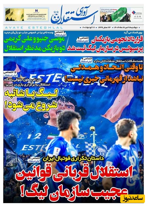 ساعدنیوز: در روز دوشنبه 27 مرداد 1404، روزنامه‌های کشور با عناوین مختلف به مهم‌ترین رویدادهای ورزشی، اجتماعی و سیاسی پرداخته‌اند. از تحولات جدید در عرصه‌های مختلف تا واکنش‌ها به اتفاقات روز، این عناوین نمایانگر دغدغه‌های جامعه در این روزها هستند.