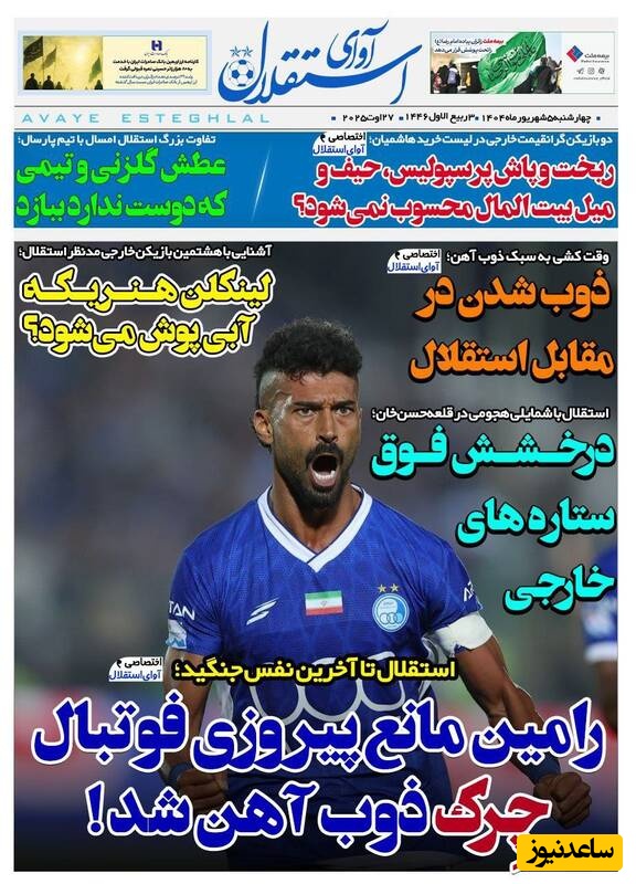 به گزارش سرویس ورزش ساعدنیوز، روزنامه‌ها در شماره امروز خود به موضوعات مختلفی پرداخته‌اند؛ از گزارش‌های داغ ورزشی و حواشی پیرامون تیم‌های ملی گرفته تا تحلیل‌های سیاسی و اقتصادی. در این میان، اخبار روز، تحلیل‌ها و دیدگاه‌های تازه‌ای به مخاطبان ارائه می‌دهند.