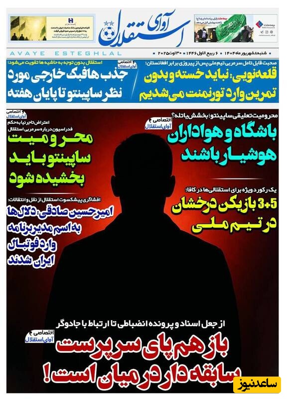 ساعدنیوز: در روز شنبه 8 شهریور 1404، روزنامه‌های کشور با عناوین مختلف به مهم‌ترین رویدادهای ورزشی، اجتماعی و سیاسی پرداخته‌اند. از تحولات جدید در عرصه‌های مختلف تا واکنش‌ها به اتفاقات روز، این عناوین نمایانگر دغدغه‌های جامعه در این روزها هستند.