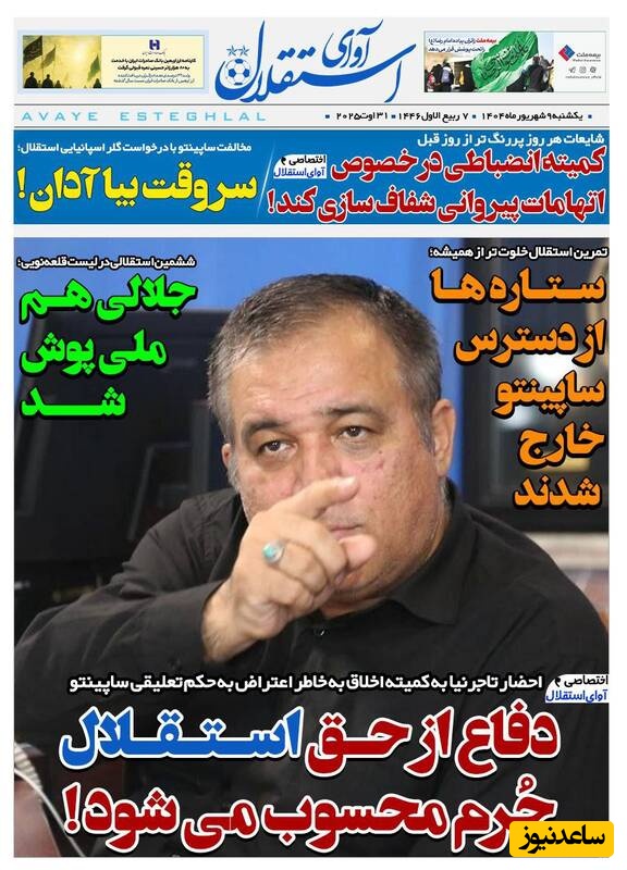 ساعدنیوز: در روز یکشنبه 9 شهریور 1404، روزنامه‌های کشور با عناوین مختلف به مهم‌ترین رویدادهای ورزشی، اجتماعی و سیاسی پرداخته‌اند. از تحولات جدید در عرصه‌های مختلف تا واکنش‌ها به اتفاقات روز، این عناوین نمایانگر دغدغه‌های جامعه در این روزها هستند.