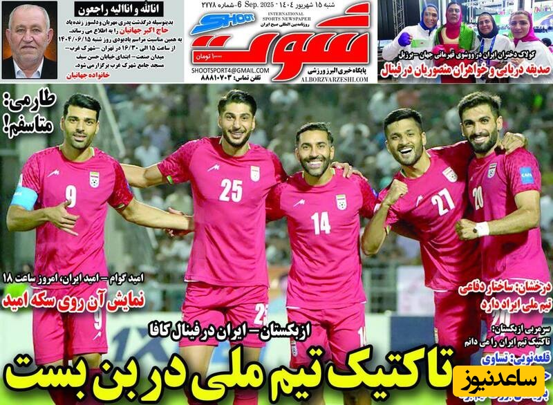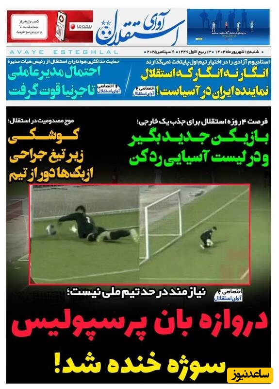 ساعدنیوز: در روز شنبه 15 شهریور 1404، روزنامه‌های کشور با عناوین مختلف به مهم‌ترین رویدادهای ورزشی، اجتماعی و سیاسی پرداخته‌اند. از تحولات جدید در عرصه‌های مختلف تا واکنش‌ها به اتفاقات روز، این عناوین نمایانگر دغدغه‌های جامعه در این روزها هستند.