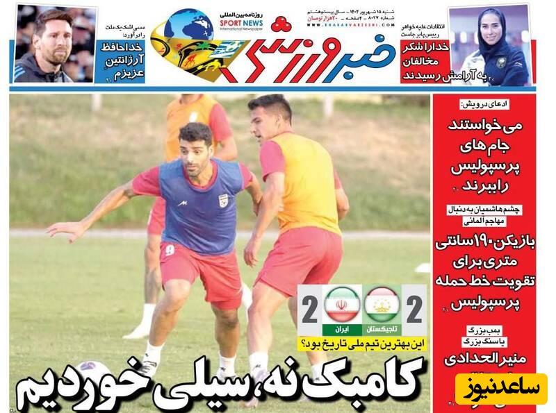 مهم‌ترین عناوین ورزشی شنبه 15 شهریور 1404 در یک نگاه / تساوی ناباورانه تیم ملی مقابل تاجیکستان