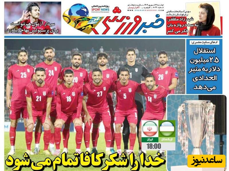 به گزارش سرویس ورزش ساعدنیوز، روزنامه‌ها در شماره امروز خود به موضوعات مختلفی پرداخته‌اند؛ از گزارش‌های داغ ورزشی و حواشی پیرامون تیم‌های ملی گرفته تا تحلیل‌های سیاسی و اقتصادی. در این میان، اخبار روز، تحلیل‌ها و دیدگاه‌های تازه‌ای به مخاطبان ارائه می‌دهند.