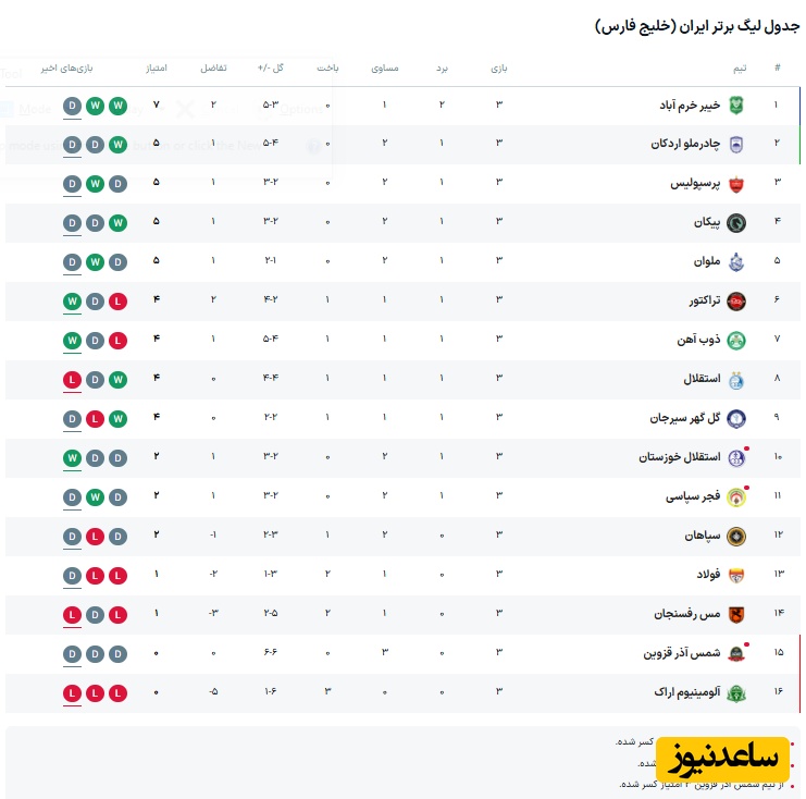 به گزارش سرویس ورزش ساعدنیوز، هفته سوم لیگ برتر ایران به پایان رسید و برخلاف انتظارات، تیمی تازهوارد مثل خیبر خرمآباد با عملکردی درخشان در صدر جدول قرار گرفته است. شاگردان خیبر با دو پیروزی و یک تساوی، 7 امتیاز اندوختهاند و حالا بالاتر از پرسپولیس، ملوان و تراکتور، صدرنشین لیگ هستند.