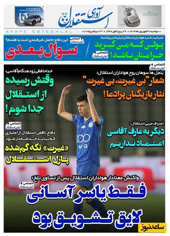 ساعدنیوز: در روز دوشنبه 31 شهریور 1404، روزنامه‌های کشور با عناوین مختلف به مهم‌ترین رویدادهای ورزشی، اجتماعی و سیاسی پرداخته‌اند. از تحولات جدید در عرصه‌های مختلف تا واکنش‌ها به اتفاقات روز، این عناوین نمایانگر دغدغه‌های جامعه در این روزها هستند.