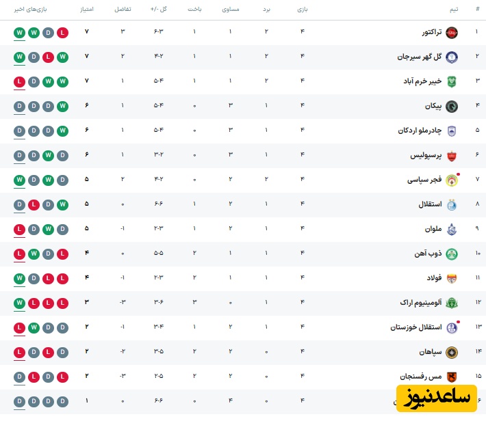 به گزارش سرویس ورزش ساعدنیوز، جدول لیگ پس از چهار هفته چهرهای متوازن و جذاب به خود گرفته است؛ تراکتور با تفاضل گل بهتر صدرنشین است، اما گلگهر و خیبر نیز با همان امتیاز در تعقیب هستند. پشت سر آنها، تیمهایی مانند پیکان، چادرملو و پرسپولیس با 6 امتیاز کمین کردهاند و نشان میدهند رقابت در میانه جدول هم به شدت داغ است. استقلال با 5 امتیاز شروعی نهچندان قدرتمند داشته و سپاهان و مس رفسنجان نیز با تنها 2 امتیاز وضعیت نگرانکنندهای دارند. شمس آذر قزوین هم با چهار تساوی متوالی در قعر جدول باقی مانده تا ثابت شود مسیر دشواری برای کسب پیروزی پیشرو دارد.