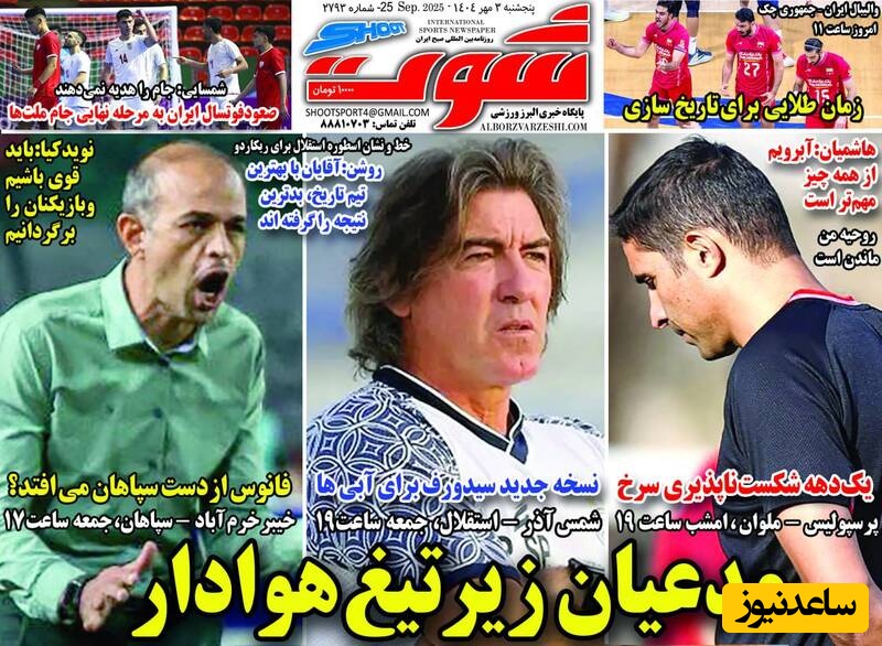 به گزارش سرویس ورزش ساعدنیوز، روزنامه‌ها در شماره امروز خود به موضوعات مختلفی پرداخته‌اند؛ از گزارش‌های داغ ورزشی و حواشی پیرامون تیم‌های ملی گرفته تا تحلیل‌های سیاسی و اقتصادی. در این میان، اخبار روز، تحلیل‌ها و دیدگاه‌های تازه‌ای به مخاطبان ارائه می‌دهند.