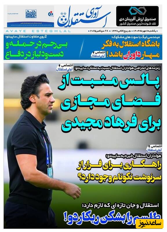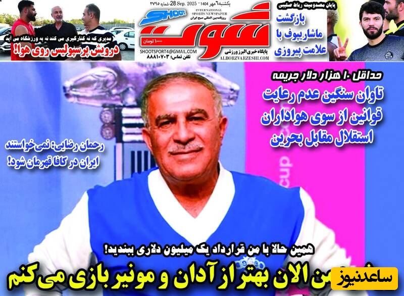 به گزارش سرویس ورزش ساعدنیوز، روزنامه‌ها در شماره امروز خود به موضوعات مختلفی پرداخته‌اند؛ از گزارش‌های داغ ورزشی و حواشی پیرامون تیم‌های ملی گرفته تا تحلیل‌های سیاسی و اقتصادی. در این میان، اخبار روز، تحلیل‌ها و دیدگاه‌های تازه‌ای به مخاطبان ارائه می‌دهند.