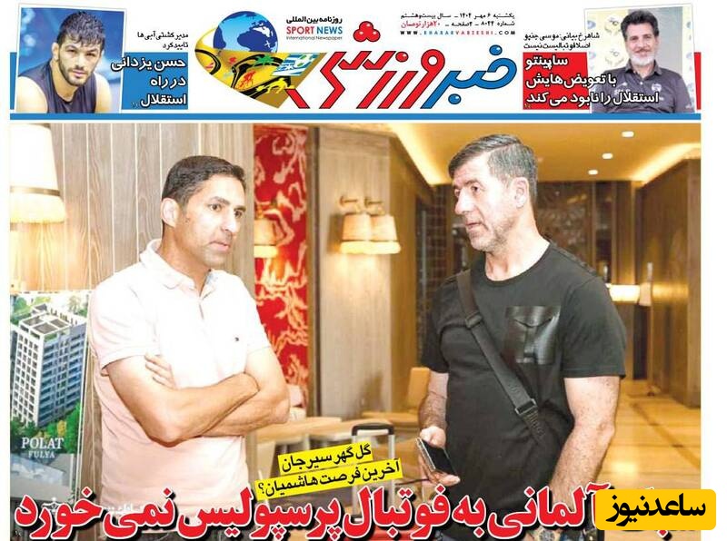 مهم‌ترین عناوین ورزشی یکشنبه 6 مهر 1404 در یک نگاه / آقای هاشمیان سبک آلمانی به درد پرسپولیس ایرانی نمی خورد