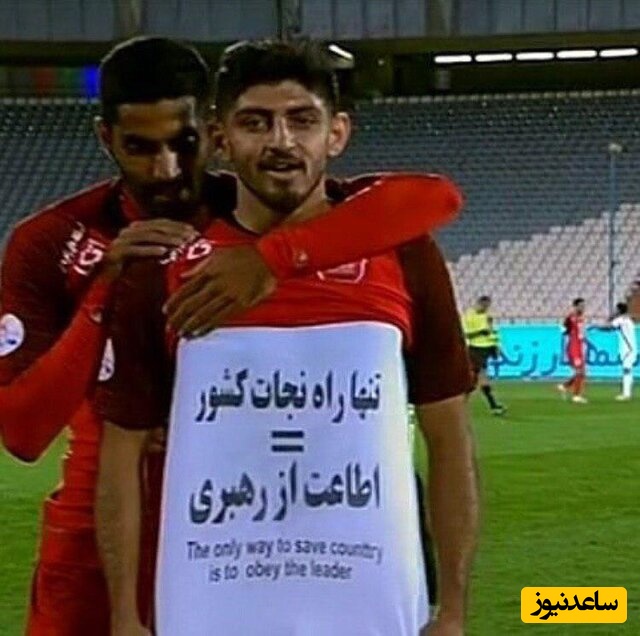 ساعدنیوز: تصویری جالب از مهدی ترابی را در وسط زمین مشاهده می کنید که نوشته بسیار خوبی روی پیراهنش چاپ کرده است.