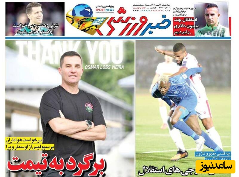 به گزارش سرویس ورزش ساعدنیوز، روزنامه‌ها در شماره امروز خود به موضوعات مختلفی پرداخته‌اند؛ از گزارش‌های داغ ورزشی و حواشی پیرامون تیم‌های ملی گرفته تا تحلیل‌های سیاسی و اقتصادی. در این میان، اخبار روز، تحلیل‌ها و دیدگاه‌های تازه‌ای به مخاطبان ارائه می‌دهند.