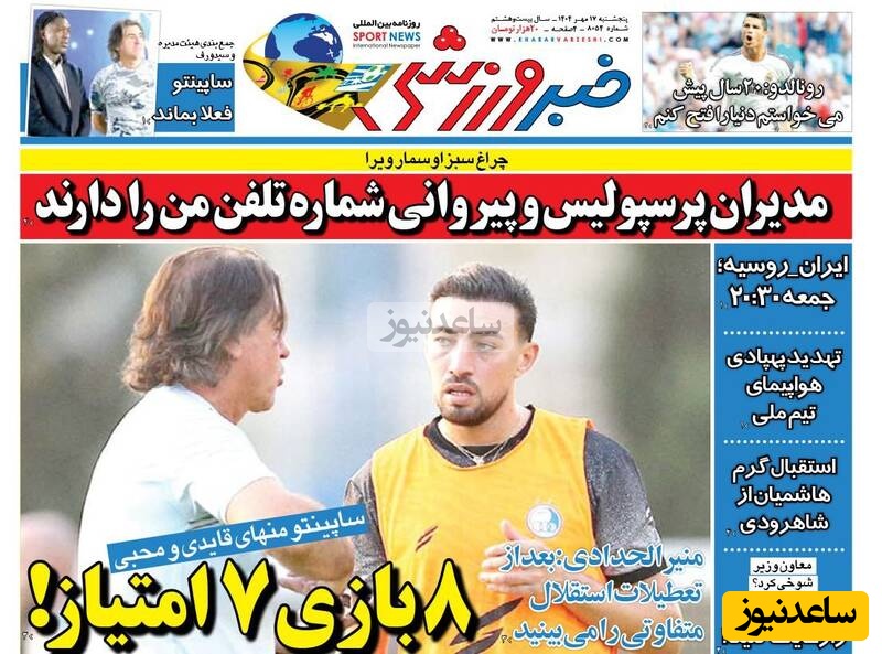به گزارش سرویس ورزش ساعدنیوز، روزنامه‌ها در شماره امروز خود به موضوعات مختلفی پرداخته‌اند؛ از گزارش‌های داغ ورزشی و حواشی پیرامون تیم‌های ملی گرفته تا تحلیل‌های سیاسی و اقتصادی. در این میان، اخبار روز، تحلیل‌ها و دیدگاه‌های تازه‌ای به مخاطبان ارائه می‌دهند.