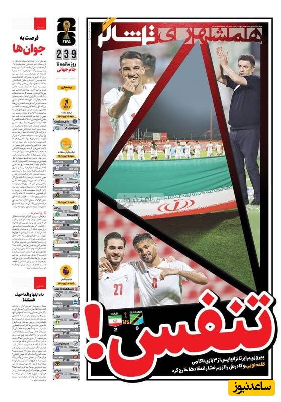 به گزارش سرویس ورزش ساعدنیوز، روزنامه‌ها در شماره امروز خود به موضوعات مختلفی پرداخته‌اند؛ از گزارش‌های داغ ورزشی و حواشی پیرامون تیم‌های ملی گرفته تا تحلیل‌های سیاسی و اقتصادی. در این میان، اخبار روز، تحلیل‌ها و دیدگاه‌های تازه‌ای به مخاطبان ارائه می‌دهند.