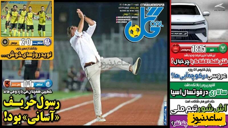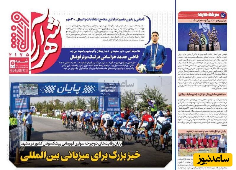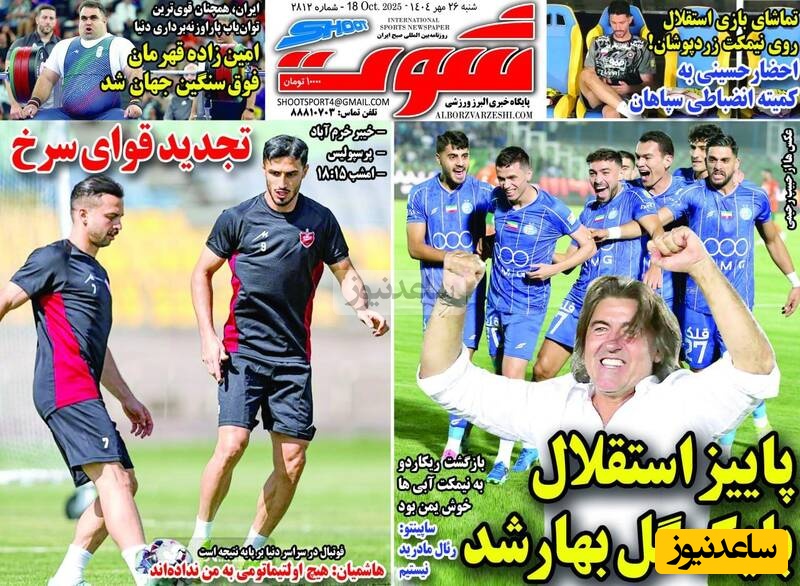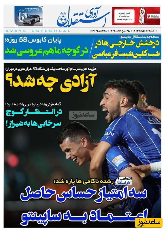 ساعدنیوز: در روز شنبه 26 مهر 1404، روزنامه‌های کشور با عناوین مختلف به مهم‌ترین رویدادهای ورزشی، اجتماعی و سیاسی پرداخته‌اند. از تحولات جدید در عرصه‌های مختلف تا واکنش‌ها به اتفاقات روز، این عناوین نمایانگر دغدغه‌های جامعه در این روزها هستند.