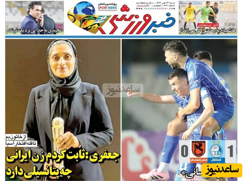 مهم‌ترین عناوین ورزشی شنبه 26 مهر 1404 در یک نگاه / از خاتون بم تا قله افتخار آسیا؛ جعفری: ثابت کردم زن ایرانی چه پتانسیلی دارد