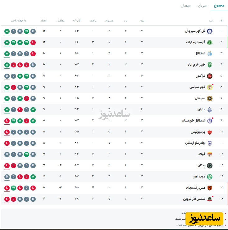 به گزارش سرویس ورزش ساعدنیوز، ر پایان هفته هفتم لیگ برتر فوتبال ایران، رقابتهای فشردهای در صدر جدول مشاهده میشود. تیمهای گلگهر سیرجان و آلومینیوم اراک با کسب 12 امتیاز از 7 بازی، در صدر جدول قرار دارند. تیم استقلال با 10 امتیاز در رده سوم قرار دارد. در میانه جدول، تیمهای خیبر خرمآباد، تراکتور، فجر سپاسی، سپاهان، ملوان، استقلال خوزستان، پرسپولیس، چادرملو اردکان، فولاد، پیکان، ذوبآهن، مس رفسنجان و شمس آذر قزوین به ترتیب در ردههای چهارم تا شانزدهم قرار دارند. این جدول نشاندهنده رقابتهای نزدیک و حساس در لیگ برتر ایران است.