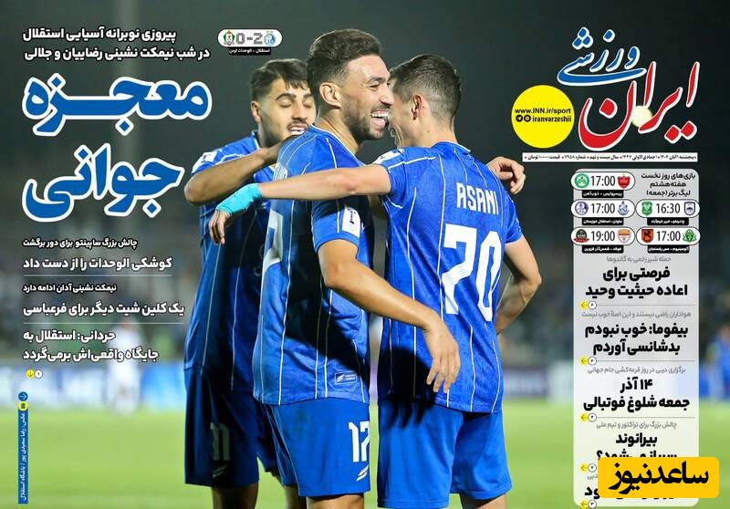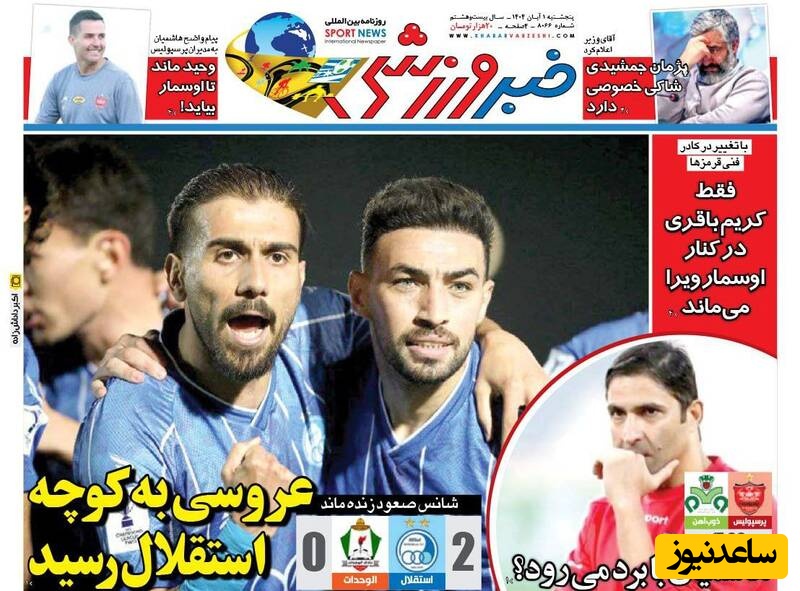 مهم‌ترین عناوین ورزشی پنجشنبه 1 آبان 1404 در یک نگاه / عروسی این بار در کوچه استقلالی ها