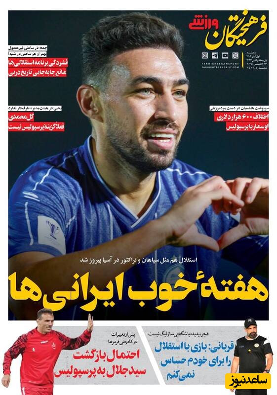 به گزارش سرویس ورزش ساعدنیوز، روزنامه‌ها در شماره امروز خود به موضوعات مختلفی پرداخته‌اند؛ از گزارش‌های داغ ورزشی و حواشی پیرامون تیم‌های ملی گرفته تا تحلیل‌های سیاسی و اقتصادی. در این میان، اخبار روز، تحلیل‌ها و دیدگاه‌های تازه‌ای به مخاطبان ارائه می‌دهند.