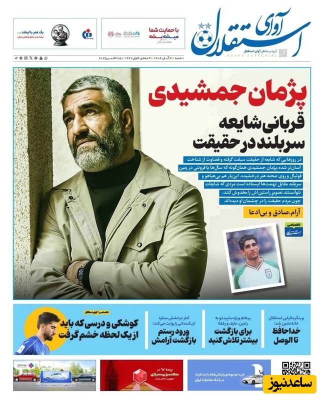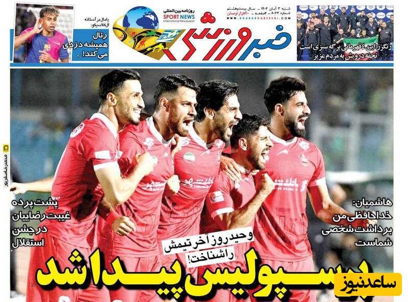 ساعدنیوز: در روز شنبه 3 آبان 1404، روزنامه‌های کشور با عناوین مختلف به مهم‌ترین رویدادهای ورزشی، اجتماعی و سیاسی پرداخته‌اند. از تحولات جدید در عرصه‌های مختلف تا واکنش‌ها به اتفاقات روز، این عناوین نمایانگر دغدغه‌های جامعه در این روزها هستند.