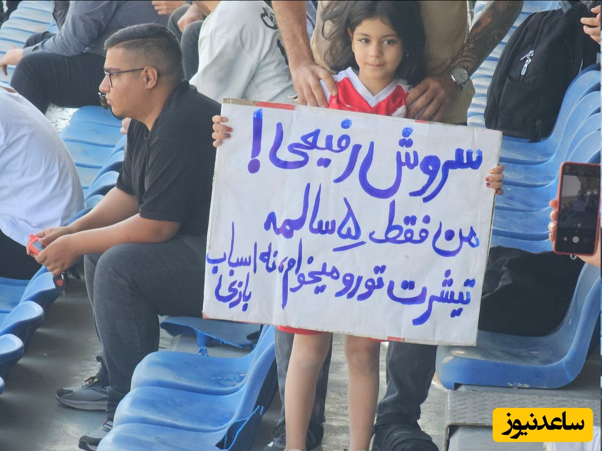 به گزارش سرویس ورزش ساعدنیوز، روز گذشته پرسپولیس موفق شد با نتیجه 2-0 ذوب آهن را شکست دهد. یکی از حواشی جالب این بازی دختربچه ای بود که با بنری به دنبال گرفتن پیراهن سروش رفیعی بود.