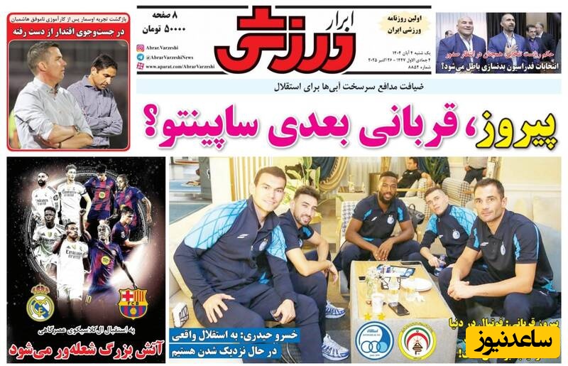 ساعدنیوز: در روز یکشنبه 4 آبان 1404، روزنامه‌های کشور با عناوین مختلف به مهم‌ترین رویدادهای ورزشی، اجتماعی و سیاسی پرداخته‌اند. از تحولات جدید در عرصه‌های مختلف تا واکنش‌ها به اتفاقات روز، این عناوین نمایانگر دغدغه‌های جامعه در این روزها هستند.