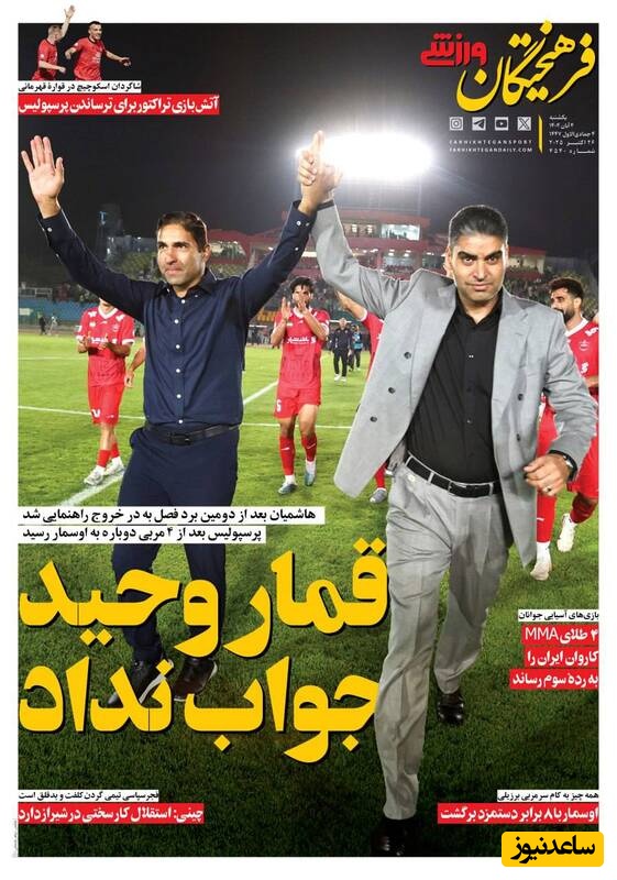 به گزارش سرویس ورزش ساعدنیوز، روزنامه‌ها در شماره امروز خود به موضوعات مختلفی پرداخته‌اند؛ از گزارش‌های داغ ورزشی و حواشی پیرامون تیم‌های ملی گرفته تا تحلیل‌های سیاسی و اقتصادی. در این میان، اخبار روز، تحلیل‌ها و دیدگاه‌های تازه‌ای به مخاطبان ارائه می‌دهند.