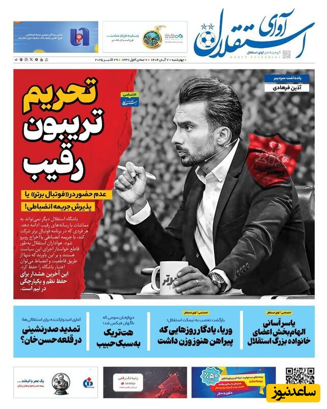 ساعدنیوز: در روز چهارشنبه 7 آبان 1404، روزنامه‌های کشور با عناوین مختلف به مهم‌ترین رویدادهای ورزشی، اجتماعی و سیاسی پرداخته‌اند. از تحولات جدید در عرصه‌های مختلف تا واکنش‌ها به اتفاقات روز، این عناوین نمایانگر دغدغه‌های جامعه در این روزها هستند.
