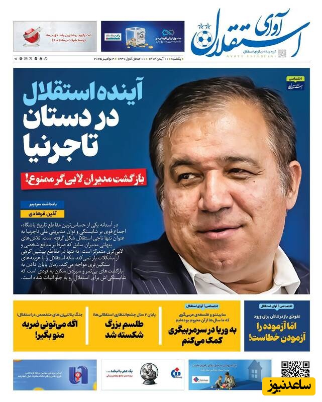 ساعدنیوز: در روز یکشنبه 11 آبان 1404، روزنامه‌های کشور با عناوین مختلف به مهم‌ترین رویدادهای ورزشی، اجتماعی و سیاسی پرداخته‌اند. از تحولات جدید در عرصه‌های مختلف تا واکنش‌ها به اتفاقات روز، این عناوین نمایانگر دغدغه‌های جامعه در این روزها هستند.
