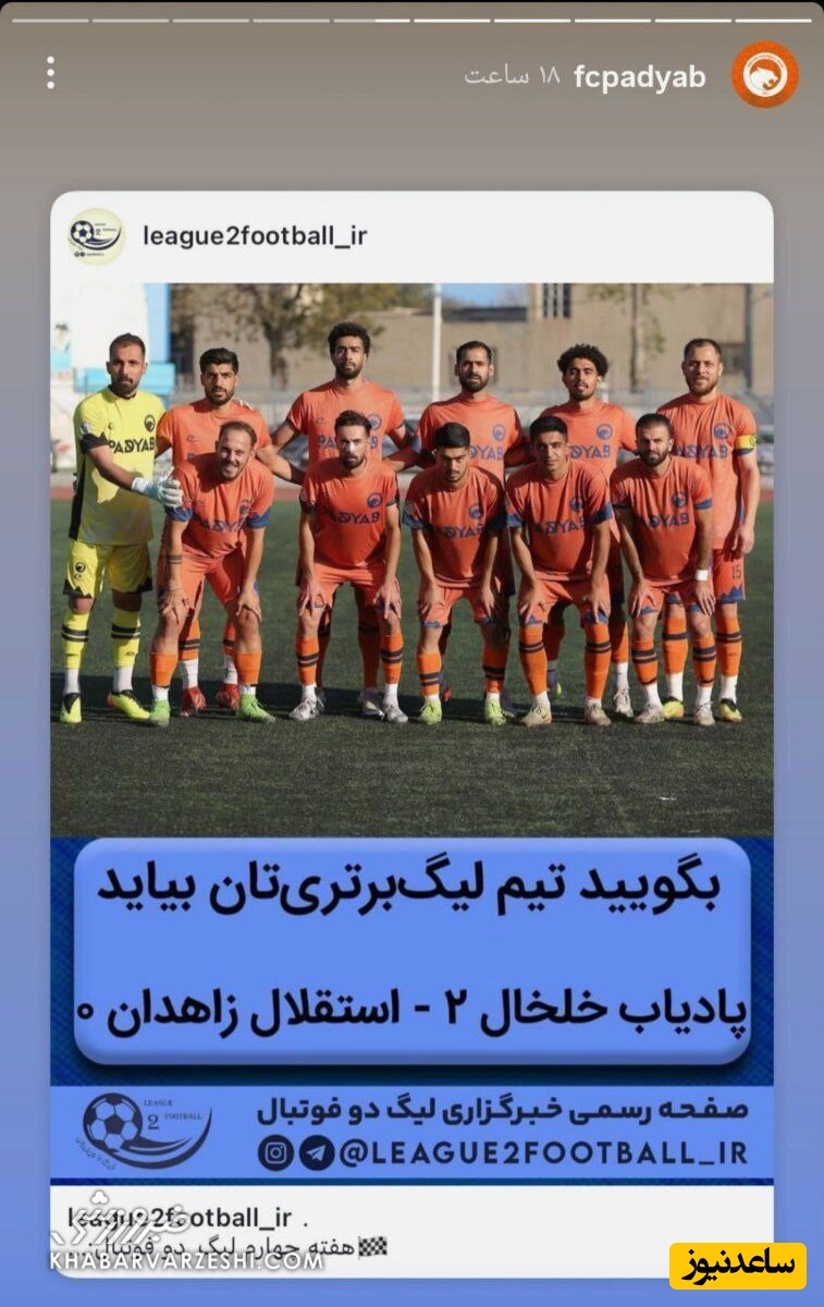 به گزارش سرویس ورزش ساعدنیوز، صفحه رسمی باشگاه پادیاب خلخال پس از پیروزی دو بر صفر این تیم مقابل استقلال زاهدان که این تیم تحت مالکیت هلدینگ خلیج فارس است و به نوعی تیم دوم استقلال تهران به شمار میرود با انتشار متنی در صفحه اینستاگرام خود برای باشگاه استقلال و تیم اول این هلدینگ حریف طلبید و رجزخوانی کرد.