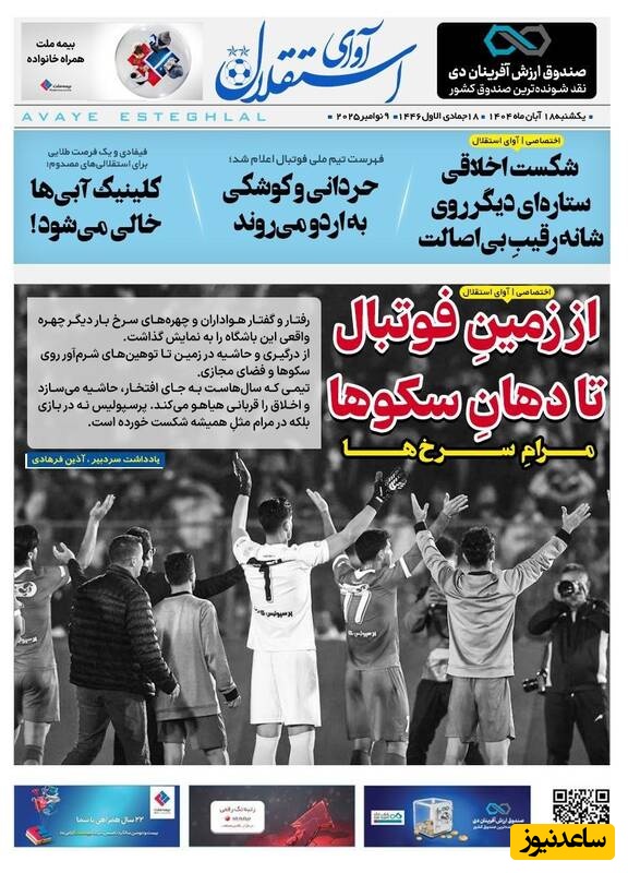 به گزارش سرویس ورزش ساعدنیوز، روزنامهها در شماره امروز خود به موضوعات مختلفی پرداختهاند؛ از گزارشهای داغ ورزشی و حواشی پیرامون تیمهای ملی گرفته تا تحلیلهای سیاسی و اقتصادی. در این میان، اخبار روز، تحلیلها و دیدگاههای تازهای به مخاطبان ارائه میدهند.