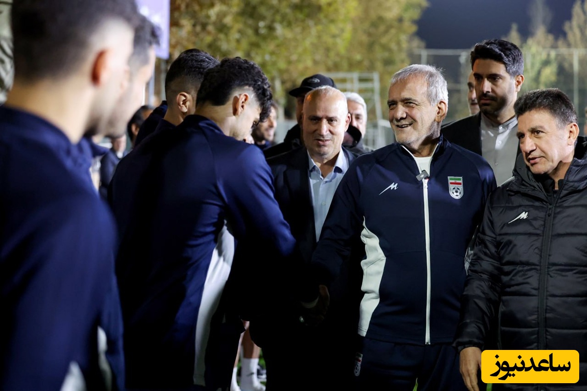 پزشکیان بعد از حضور در جمع ملی پوشان فوتبال ایران، با تک تک بازیکنان دست داد و جالب اینکه قبل از معرفی بازیکنان توسط امیر قلعهنویی سرمربی تیم، او خودبا اسم بازیکنان را صدا می زد تا بار دیگر نشان بدهد چقدر به فوتبال علاقهمند است و موضوعات مختلفی در این خصوص را پیگیری می کند.