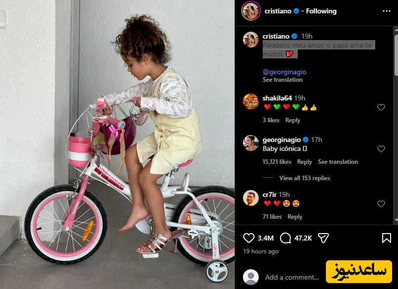 رونالدو به مناسبت تولد دخترش با انتشار این پست در صفحه اینستاگرامش نوشت:
