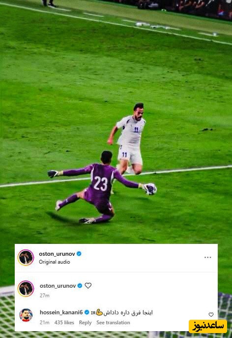 این ویدیو با واکنش جالب حسین کنعانیزادگان، مدافع تیم ملی ایران و رفیق نزدیک اورونوف در پرسپولیس همراه شد. کنعانی در کامنتی که رنگ و بوی کریخوانی داشت، نوشت: «اینجا فرق داره داداش!»