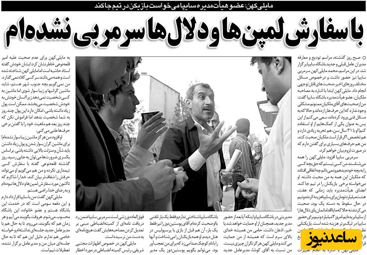 به گزارش سرویس ورزش ساعدنیوز، مایلیکهن که در پاییز سال 1388 هدایت سایپا را بر عهده داشت، 20 آبان همان سال مصاحبهای تند و تیز انجام داد که بسیار مورد توجه رسانهها قرار گرفت. بد نیست به خلاصه حرفهای حاجی مایلی در آن گفتوگو دوباره نگاه کنیم: