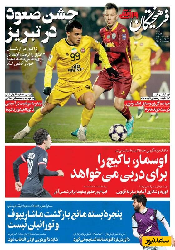 به گزارش سرویس ورزش ساعدنیوز، روزنامه‌ها در شماره امروز خود به موضوعات مختلفی پرداخته‌اند؛ از گزارش‌های داغ ورزشی و حواشی پیرامون تیم‌های ملی گرفته تا تحلیل‌های سیاسی و اقتصادی. در این میان، اخبار روز، تحلیل‌ها و دیدگاه‌های تازه‌ای به مخاطبان ارائه می‌دهند.