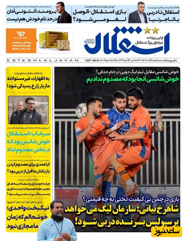 ساعدنیوز: در روز سه‌شنبه 4 آذر 1404، روزنامه‌های کشور با عناوین مختلف به مهم‌ترین رویدادهای ورزشی، اجتماعی و سیاسی پرداخته‌اند. از تحولات جدید در عرصه‌های مختلف تا واکنش‌ها به اتفاقات روز، این عناوین نمایانگر دغدغه‌های جامعه در این روزها هستند.