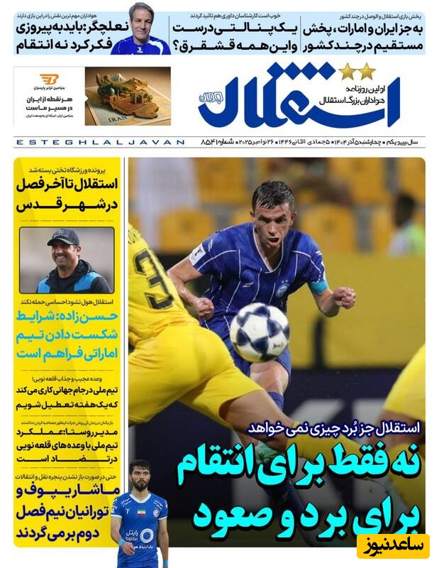 ساعدنیوز: در روز چهارشنبه 5 آذر 1404، روزنامه‌های کشور با عناوین مختلف به مهم‌ترین رویدادهای ورزشی، اجتماعی و سیاسی پرداخته‌اند. از تحولات جدید در عرصه‌های مختلف تا واکنش‌ها به اتفاقات روز، این عناوین نمایانگر دغدغه‌های جامعه در این روزها هستند.