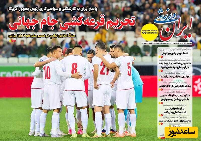 به گزارش سرویس ورزش ساعدنیوز، روزنامه‌ها در شماره امروز خود به موضوعات مختلفی پرداخته‌اند؛ از گزارش‌های داغ ورزشی و حواشی پیرامون تیم‌های ملی گرفته تا تحلیل‌های سیاسی و اقتصادی. در این میان، اخبار روز، تحلیل‌ها و دیدگاه‌های تازه‌ای به مخاطبان ارائه می‌دهند.