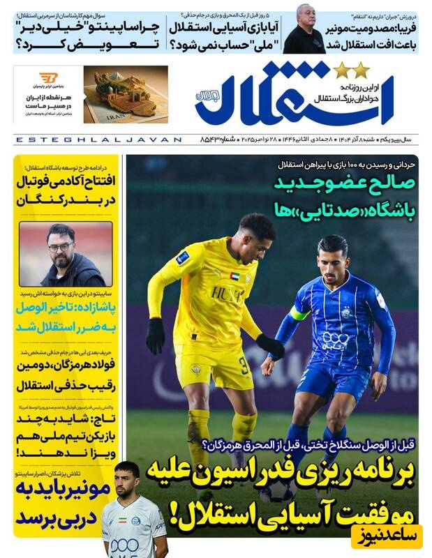 ساعدنیوز: در روز شنبه 8 آذر 1404، روزنامه‌های کشور با عناوین مختلف به مهم‌ترین رویدادهای ورزشی، اجتماعی و سیاسی پرداخته‌اند. از تحولات جدید در عرصه‌های مختلف تا واکنش‌ها به اتفاقات روز، این عناوین نمایانگر دغدغه‌های جامعه در این روزها هستند.