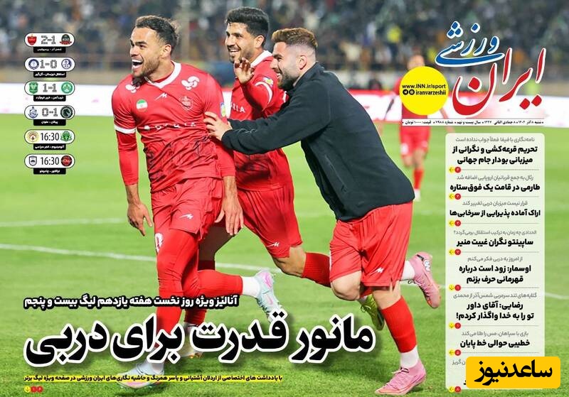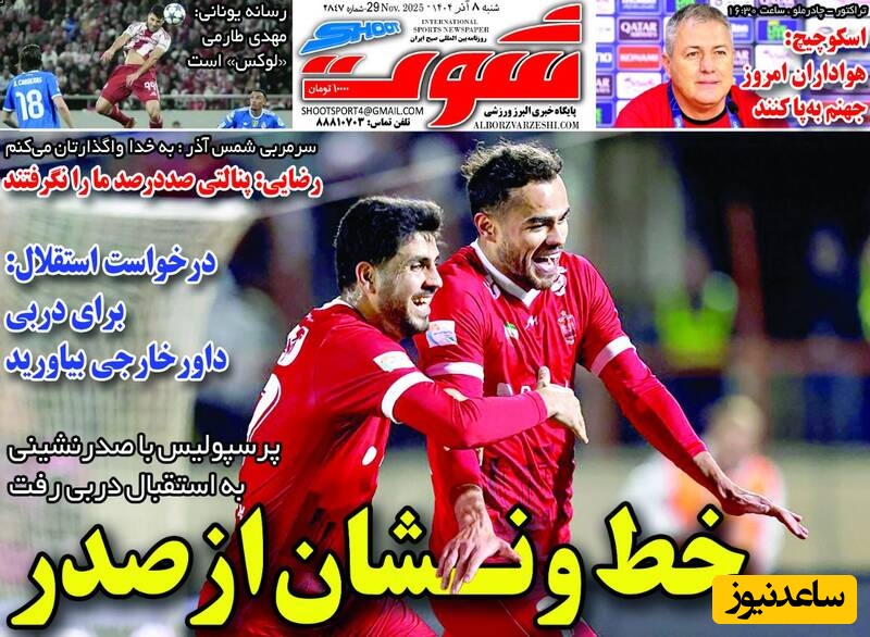به گزارش سرویس ورزش ساعدنیوز، روزنامه‌ها در شماره امروز خود به موضوعات مختلفی پرداخته‌اند؛ از گزارش‌های داغ ورزشی و حواشی پیرامون تیم‌های ملی گرفته تا تحلیل‌های سیاسی و اقتصادی. در این میان، اخبار روز، تحلیل‌ها و دیدگاه‌های تازه‌ای به مخاطبان ارائه می‌دهند.