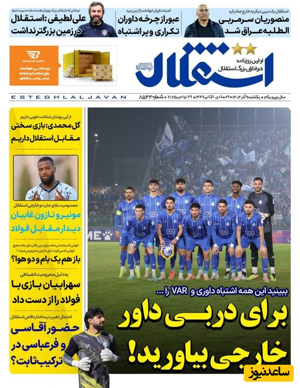 ساعدنیوز: در روز یکشنبه 9 آذر 1404، روزنامه‌های کشور با عناوین مختلف به مهم‌ترین رویدادهای ورزشی، اجتماعی و سیاسی پرداخته‌اند. از تحولات جدید در عرصه‌های مختلف تا واکنش‌ها به اتفاقات روز، این عناوین نمایانگر دغدغه‌های جامعه در این روزها هستند.