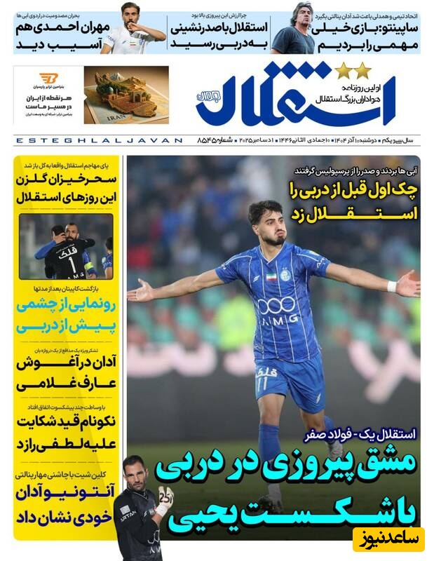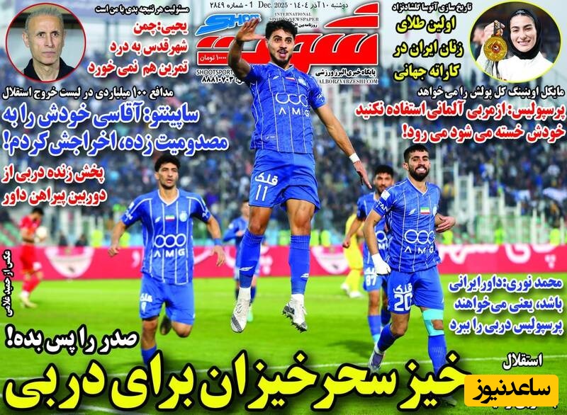 مهم‌ترین عناوین ورزشی دوشنبه 10 آذر 1404 در یک نگاه / خیز سحرخیزان برای دربی