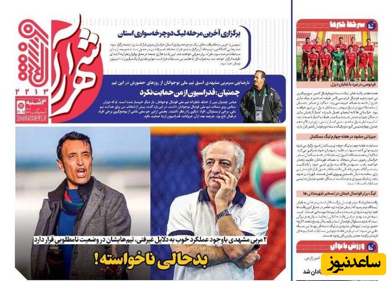 به گزارش سرویس ورزش ساعدنیوز، روزنامه‌ها در شماره امروز خود به موضوعات مختلفی پرداخته‌اند؛ از گزارش‌های داغ ورزشی و حواشی پیرامون تیم‌های ملی گرفته تا تحلیل‌های سیاسی و اقتصادی. در این میان، اخبار روز، تحلیل‌ها و دیدگاه‌های تازه‌ای به مخاطبان ارائه می‌دهند.