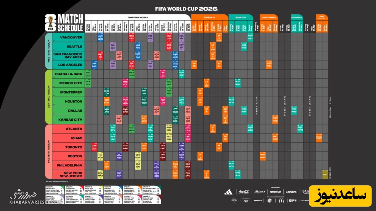 در ادامه، میتوانید برنامه کامل بازیهای مرحله گروهی تا فینال را به همراه تاریخ و محل برگزاری هر مسابقه مشاهده کنید تا هیچ یک از لحظات مهم این رویداد تاریخی را از دست ندهید.