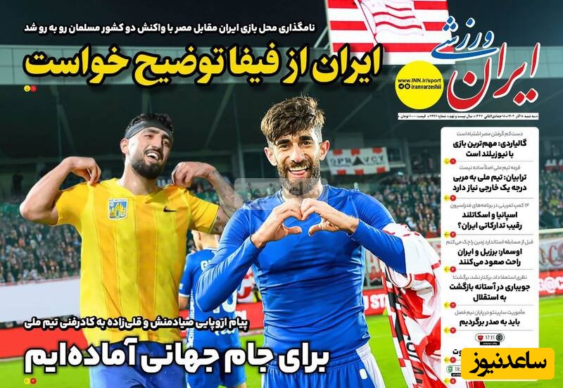 به گزارش سرویس ورزش ساعدنیوز، روزنامه‌ها در شماره امروز خود به موضوعات مختلفی پرداخته‌اند؛ از گزارش‌های داغ ورزشی و حواشی پیرامون تیم‌های ملی گرفته تا تحلیل‌های سیاسی و اقتصادی. در این میان، اخبار روز، تحلیل‌ها و دیدگاه‌های تازه‌ای به مخاطبان ارائه می‌دهند.