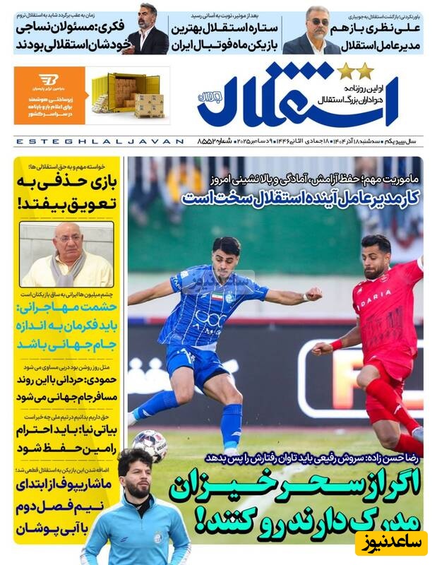 ساعدنیوز: در روز سه‌شنبه 18 آذر 1404، روزنامه‌های کشور با عناوین مختلف به مهم‌ترین رویدادهای ورزشی، اجتماعی و سیاسی پرداخته‌اند. از تحولات جدید در عرصه‌های مختلف تا واکنش‌ها به اتفاقات روز، این عناوین نمایانگر دغدغه‌های جامعه در این روزها هستند.